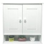 La couleur blanche neutre est idéale pour une salle de bain aux couleurs vives et laisse la place pour d »éventuels accents colorés. Les ustensiles et les produits de salle de bains sont rapidement rangés dans cette armoire .